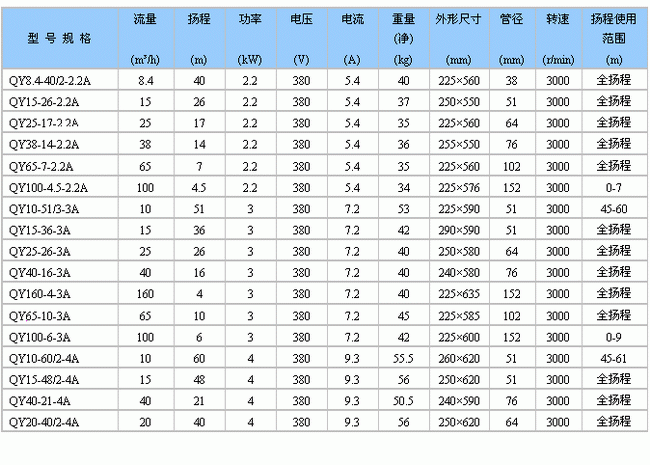 QY型充油式潜水电泵(简称潜水泵)是水泵和三相异步电动机合成一体的电力排灌设备。具有可靠的防水密封性能,体积小、重量轻、不需泵房,不需灌引水,使用维护和管理均为方便。